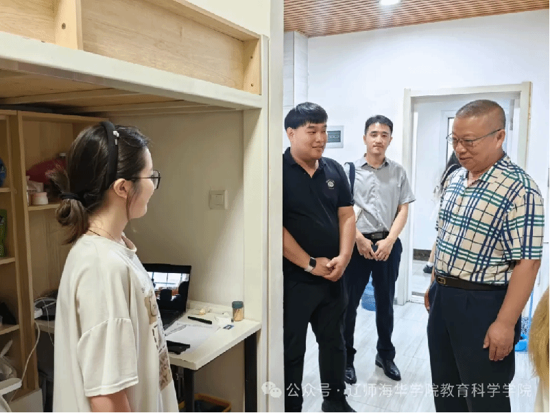 来校报道的新生早已购置了齐全的生活用品,即将开启满怀期待的全新的校园生活。报道结束当晚,教育科学学院副院长于明业、学生工作负责人李盼、新生辅导员杨雪松以及助理辅导员走进学生公寓慰问2024级新生,了解学生到校后情况,及时回应学生诉求,与同学们热情交流。