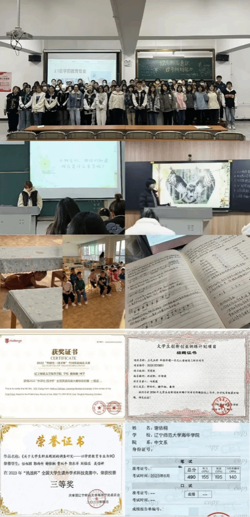 入学以来,谢依桐同学夯实基础,学习成绩优异。连续三学年专业成绩和综合测评名列前茅,此外,她参加外研社国才杯全国英语阅读大赛并获校赛一等奖,通过英语四六级考试。课外之余,她参加了挑战杯课外学术科技竞赛获校赛三等奖、辽宁省大学生创新创业训练计划,该项目成功获批国家级立项并顺利结项。她参与各类科研项目,从项目的策划到实施,每一个环节都倾注了团队的共同心血,将理论和实践相结合,在学术的田地里辛勤耕耘,收获了知识与成果。
